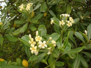 ちえみさん関西は、今日は最高気温23度で少し暖かいみたいですね・・・(^-^)このお花、最初ぎんもくせいかと思ったのですが葉っぱが違うし・・・なんという花なのでしょうね・・(^^;)