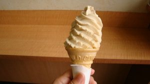 乙女さん八丁味噌ソフト!話のタネに食べてみたけど結構美味しかったですよ!(^-^)あ!チビデブがバレバレになっちゃった~(>m<;)