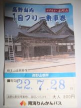 ↓↓↓高野山駅に着いたら、先ずお得な’1日フリー乗車券”を購入