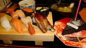 ↑↑↑「函館市場」(回るお寿司屋さんのチェーン店)のお誕生日コース&生ビール!