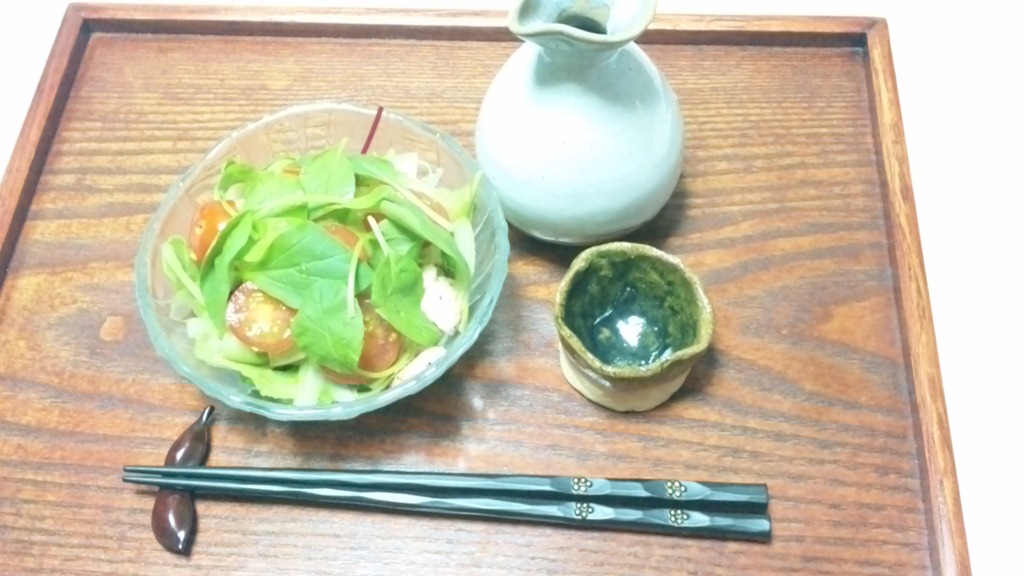 今晩の晩酌・・・お通しはササミとセロリのサラダでございます・・・この御猪口は娘が中学の時作ってくれたもの・・・(*^_^*)