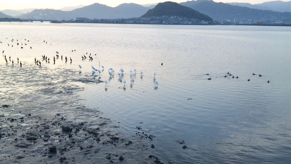 大阪にいると・・私もめったに海を見ることはありません・・・ 水鳥たちは人間があまり近寄らない場所にいるので、穏やかに泳いでいますよ・・・^^ 久しぶりに故郷のキラキラした日の出を満喫いたしました!(*^-^*)
