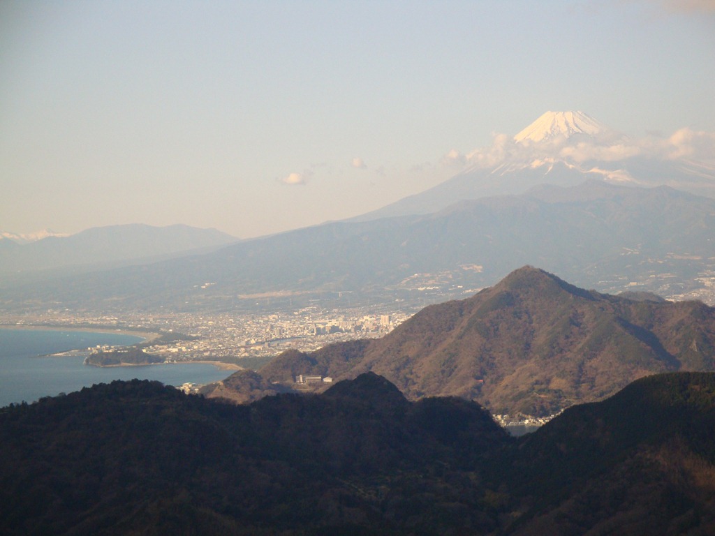 かつらぎ山に上るにしたがって、駿河湾と富士山の大パノラマが・・・・