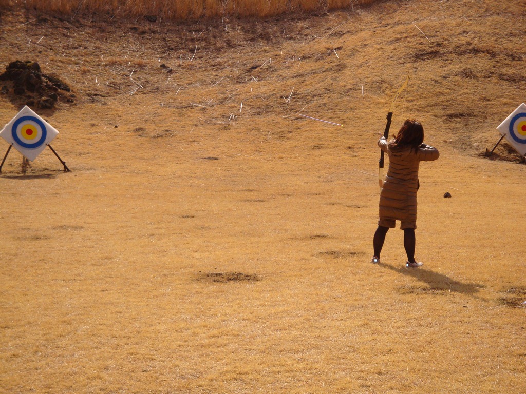 すり鉢型の山頂にはアーチェリーを楽しめる場所がありました!