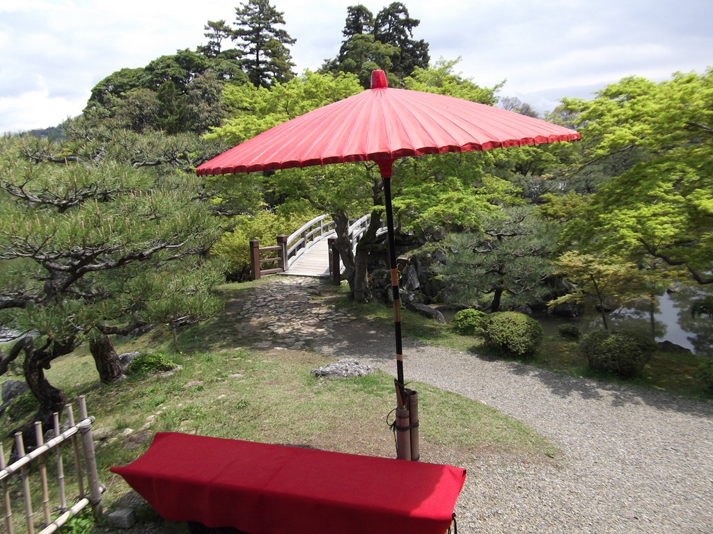 庭園内のお茶室、鳳翔台でお茶をいただきました。(500えん)大変美味しゅうございましたが、出来れば・・お菓子に小楊枝をつけて欲しかったかも。。(^_^;)