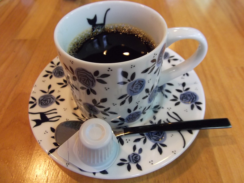 あ!コーヒーカップ、かわいいでしょう?(*^_^*)内側にネコちゃんが描いてあるんですよねー(^_^)/