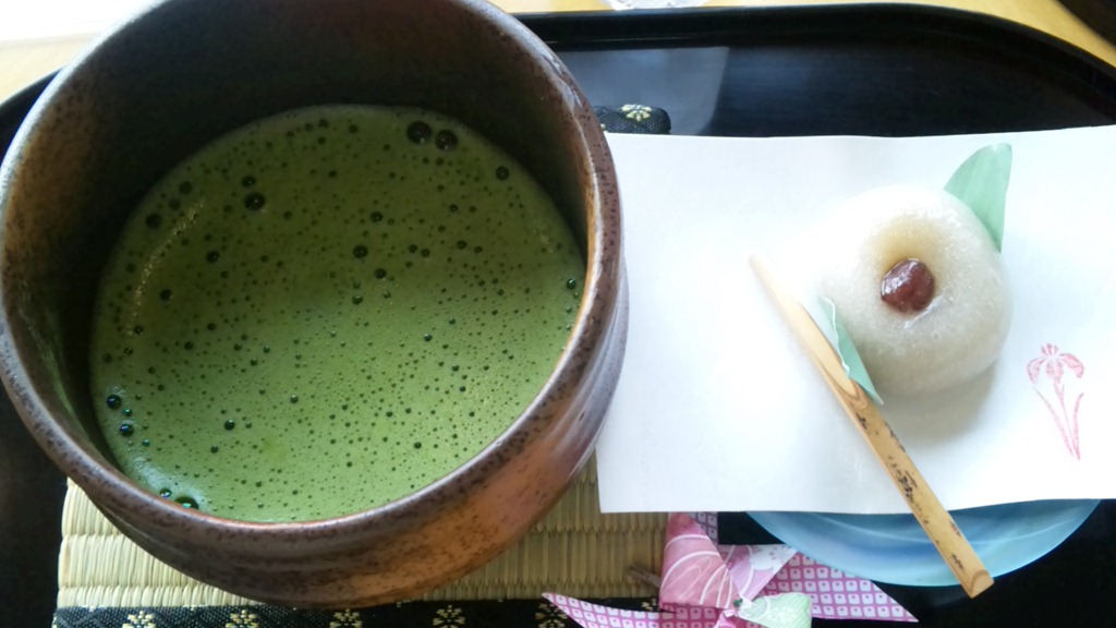 (いつもいただくお抹茶セット・・・お菓子も夏らしくひんやりと、美味しかった!^^)