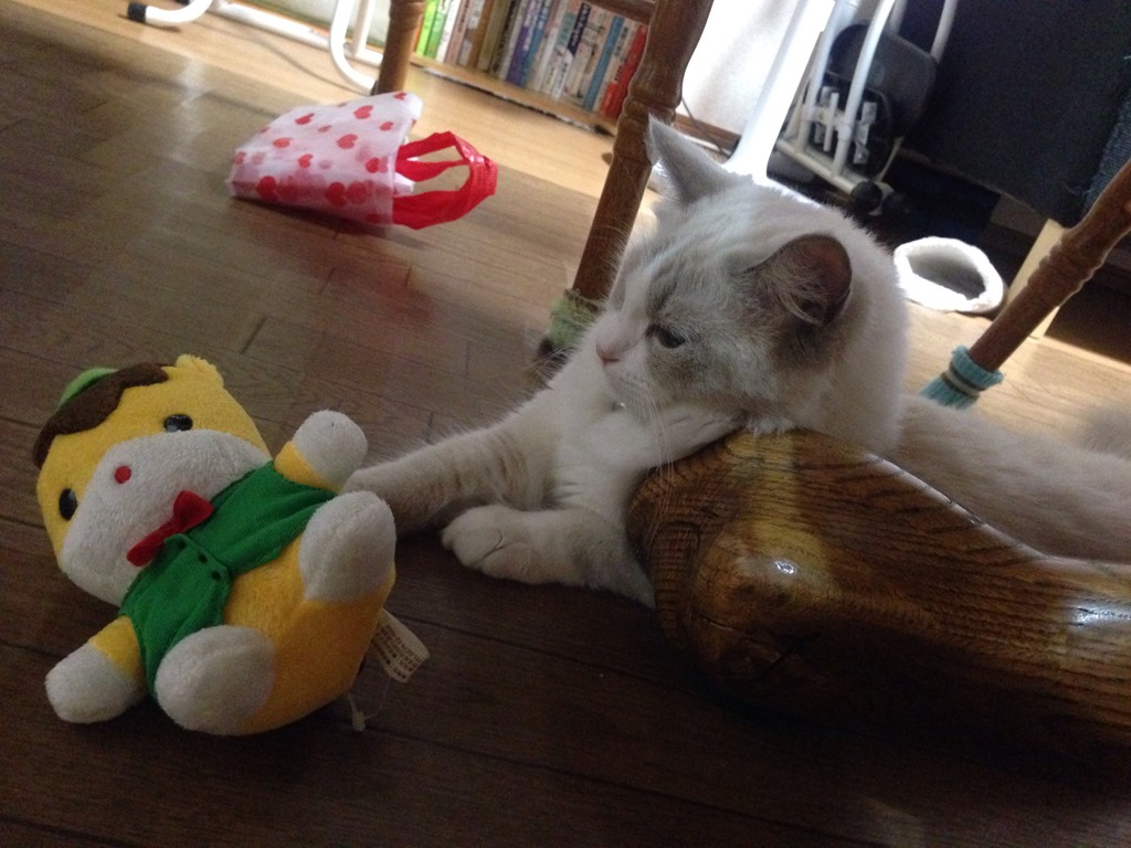 ↑ 群馬のおみやげにチャロに買って帰った、ぐんまちゃんのぬいぐるみ・・・