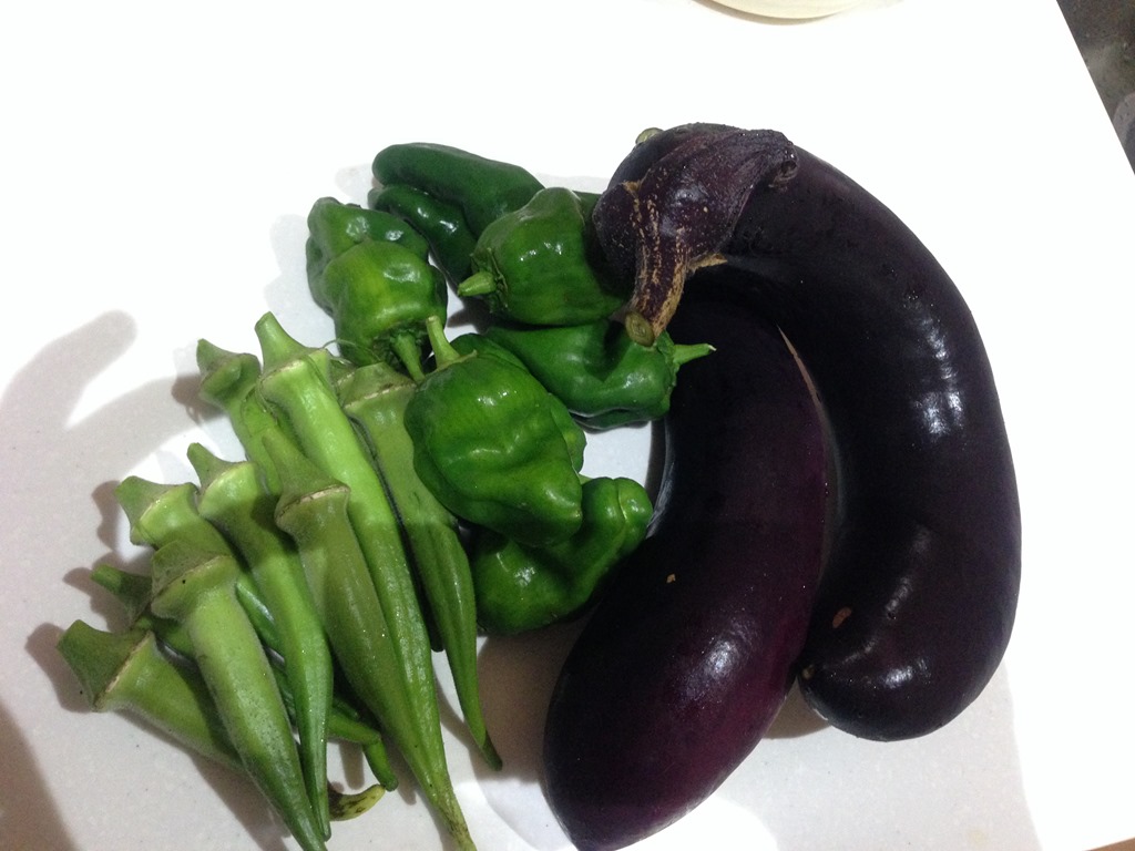 近くのお家の奥様に、畑で採りたてのお野菜をいただきましたの。