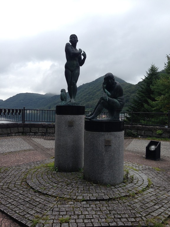 「湖畔の宿」の歌碑と「乙女の像」・・・