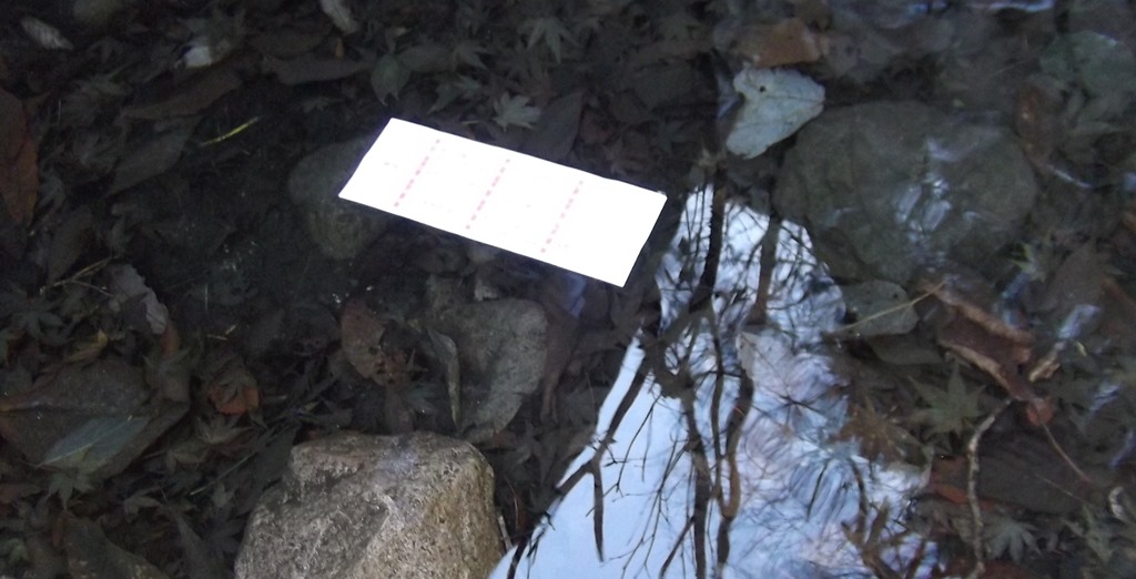 ここのおみくじはね、京都の貴船神社と同じ「水占い」のおみくじ ↓