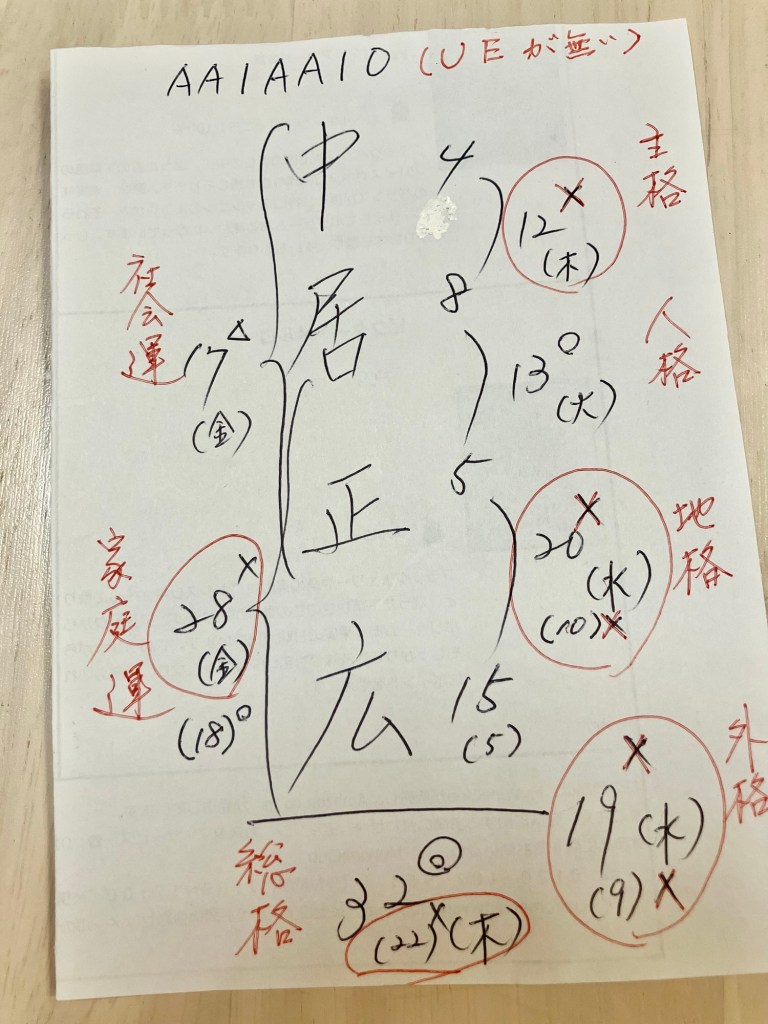 そして、お名前の最後の漢字「広」の字はその成り立ちから15画とされているものの、この字のお名前で52歳の今まで生きてこられたわけですから、この画数(5画)も又判断材料になると思われます。(つまり、そうすると総画数は22の凶数になってしまいます)